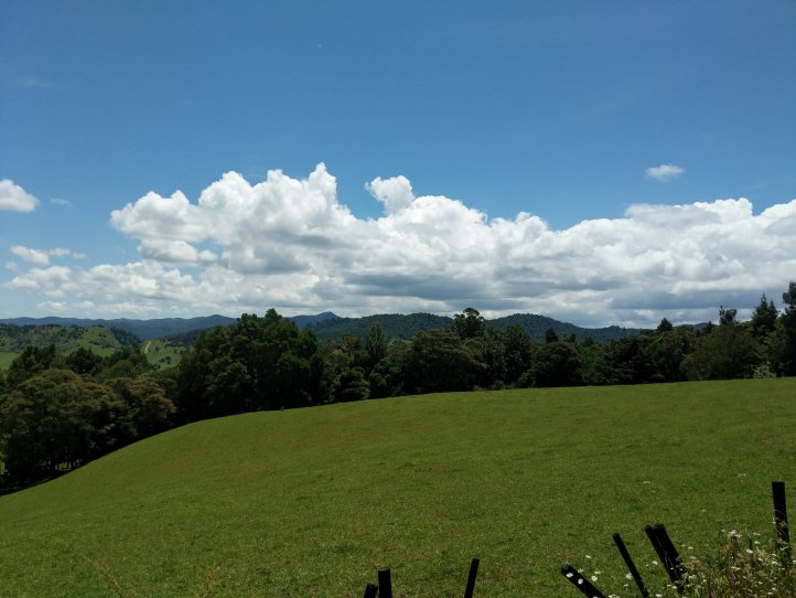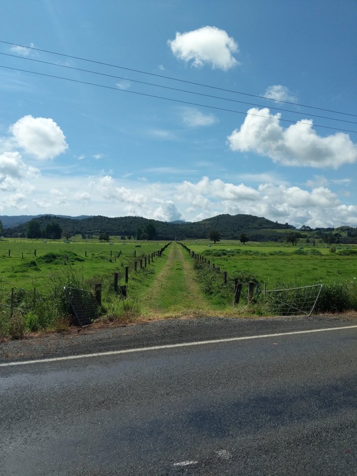 A relatively easy day compared to the forests. We started out in the farmers campsite with a very foggy morning and quickly decended down on to Motorway 1 that runs all the way to the Cape. Today was about 13km along the road which rolled up and down through farmland. Lots of good views and many fenced off cows (as opposed to yesterday’s interactions).