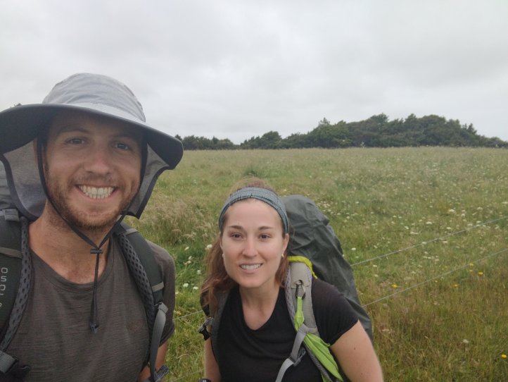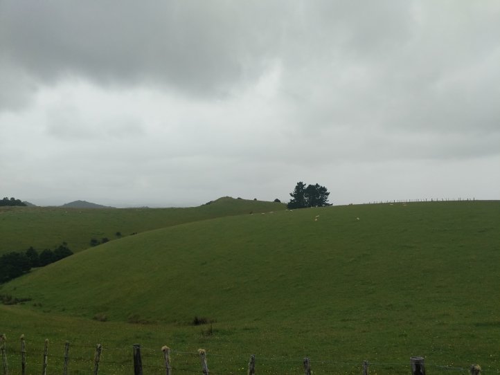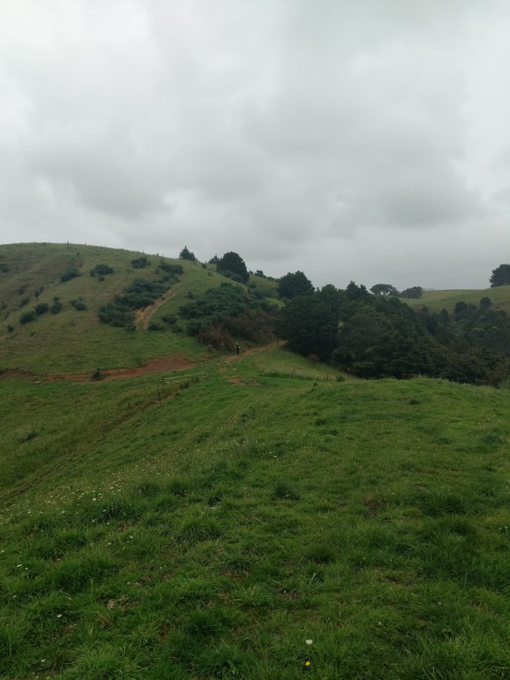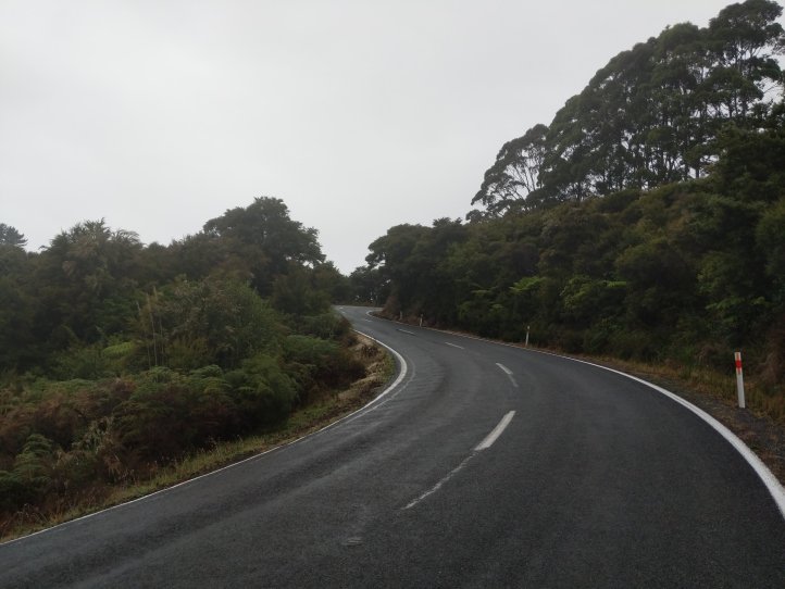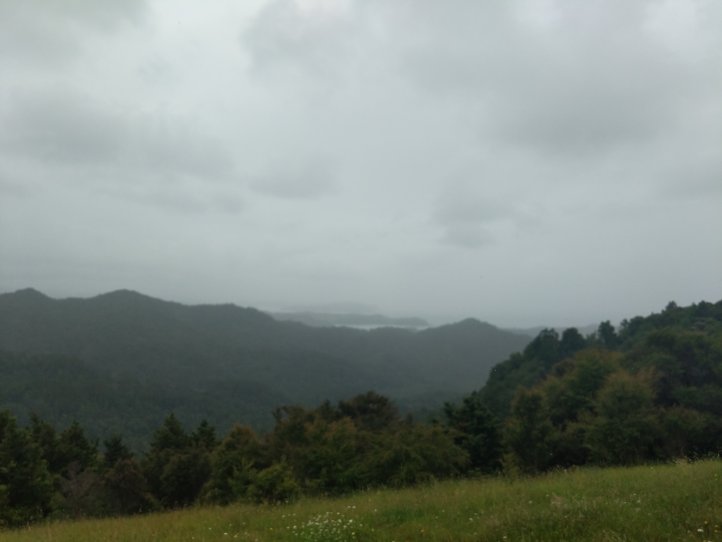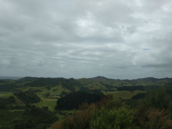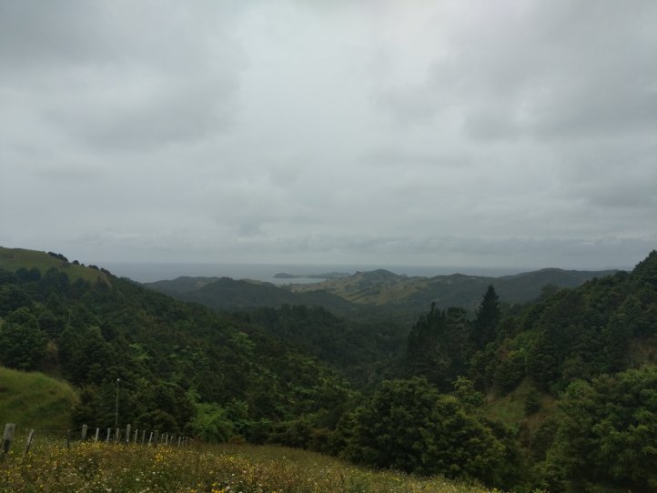 We had our first real test of our tent last night as it started raining around midnight and was still raining when we woke in the morning. Luckily we seem to have passed the test and stayed dry in the tent, we also had a nice big shelter to run into for breakfast and packing up our stuff. We were definitely sad to leave this spot as it had everything we needed and was very relaxing to spend a night there. The rain had mostly stopped by the time we started hiking and we got going with about 10km of road walking to get to the next trail. The Helena Ridge rapidly ascended over 5km through nicely established track and some farmland with great views back to Helena Bay. It was a sweaty climb but rewarding for the views.
