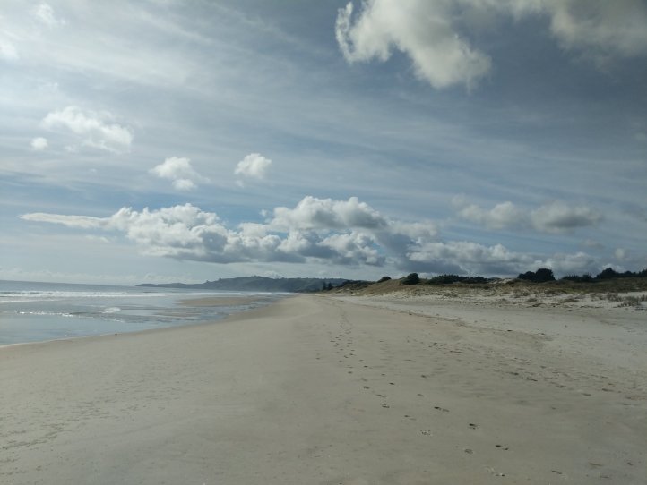 Back on the trail today (my day count isn’t going to include zero days). We finished up some of the heavier ‘luxury’ foods for breakfast that we’d bought in anticipation of our day off (I had even carried a bottle of wine that we drank yesterday). This included cheese, bread, tomatoes, and avocados. Being low on food is one of the easiest ways to convince yourself to keep moving forward to the next town and resupply. We came back out on to the beach to finish up the last 5km and left the beach heading towards the next forest.