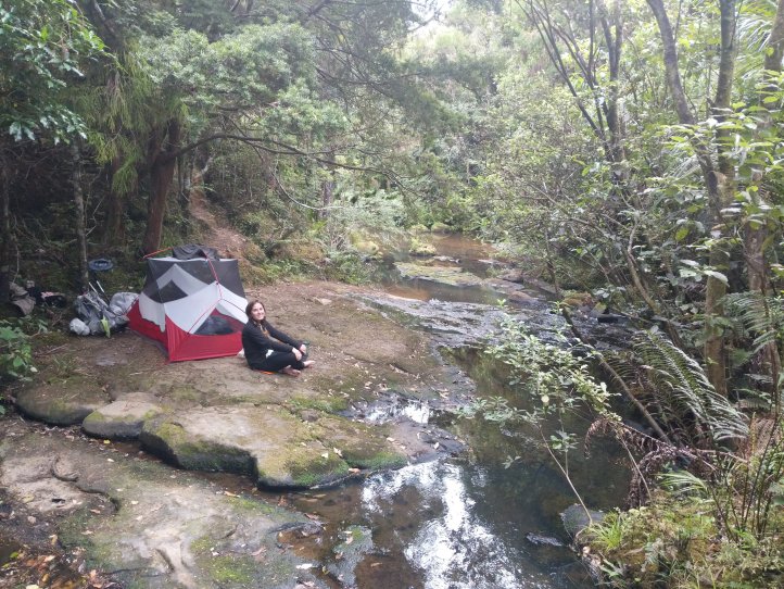 We refilled and chugged a bunch there and then quickly tramped our way over the remaining track to reach the stream. We passed a group of six fellow hikers who’d been at the olive garden with us last night and seemed to be doing some sort of driving/walking combination. Then we came across the stream we’d been aiming for and pitched our tent right on a rock next to the stream. The other six passed us and went up to the road but unfortunately as we were at the best point they kept coming back down to the stream including doing a full body wash…