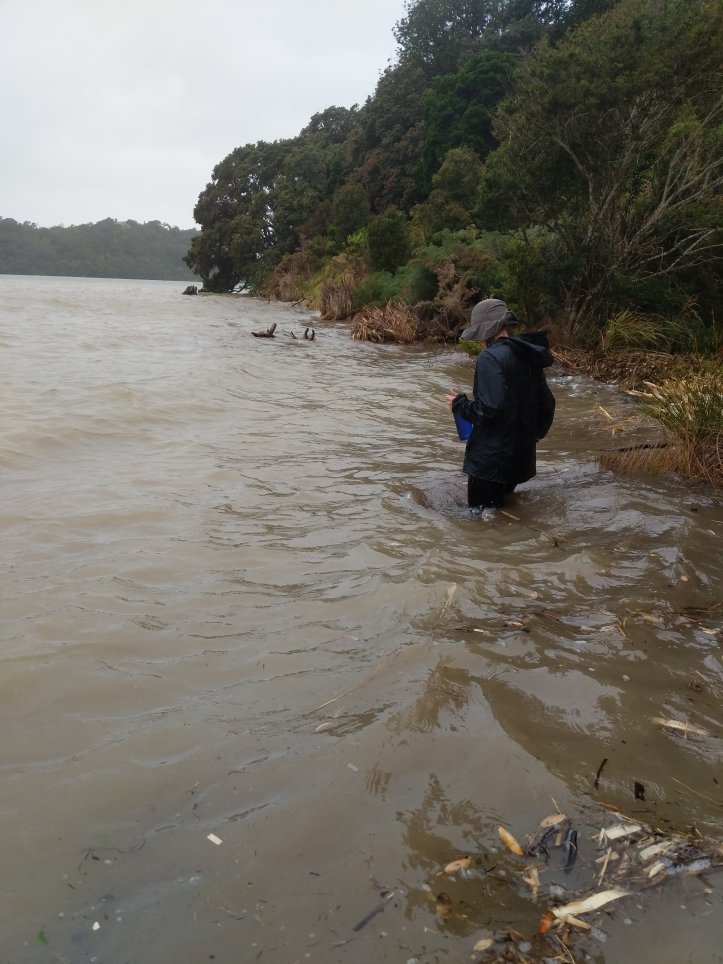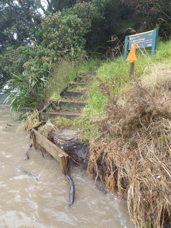 We weren’t hiking with packs as the guy had offered to drive them round since we were likely to get wet and we weren’t going to say no to that. The hike got to a part of the map that he’d said might be difficult on a day like today pretty quick and we were soon waste deep in water. The trail looked like it was supposed to follow beach around with an alternative route up a hill. The beach was underwater and the hill was washed out so we went with the beach route. It was actually quite fun as we weren’t to bothered about getting wet but was very slow going given all the debris floating around and the waves constantly buffeting us.