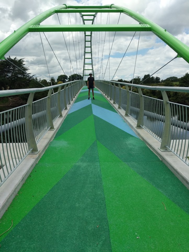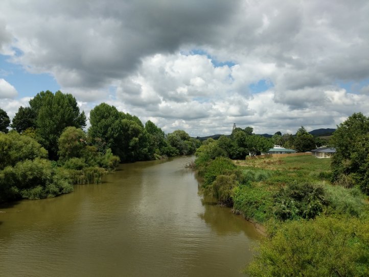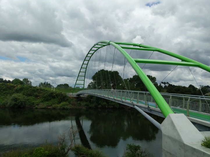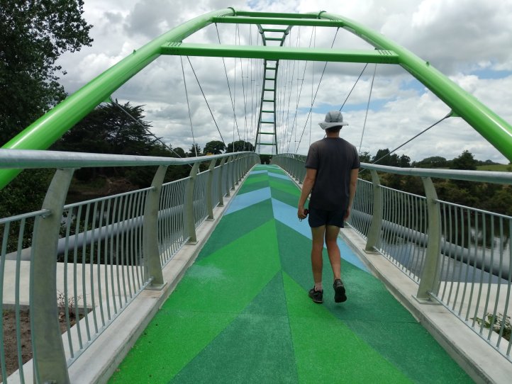 The track started at the exit of the forest and the intersection of the Waipa and Waikato rivers. We immediately crossed over the Waipa (apparently this isn’t dirty but is brown from the caves that it originates in) and started following the Waikato towards Hamilton. The track meandered nicely along the bank of the river crossing over twice including on one very fancy new bridge. Apparently there’d been some local dispute about land access so the bridge here had been built as a solution.