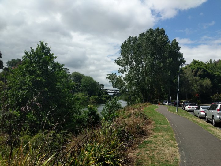 We started out early getting a ride to the post office to get rid of our bounce boxes (now three boxes including a beer box filled with stuff). We’ve shipped these on to Wellington now so we won’t have to deal with them again for awhile. Finishing up at the post office we actually had to back track a little to get to the house and start hiking from there. We gathered all of our things and hefted our full packs up for the first time in three days. The trail continued on the cycleway all the way into Hamilton. It was a very nice route and we had just enough cloud coverage to be enjoying being outside and hiking again.