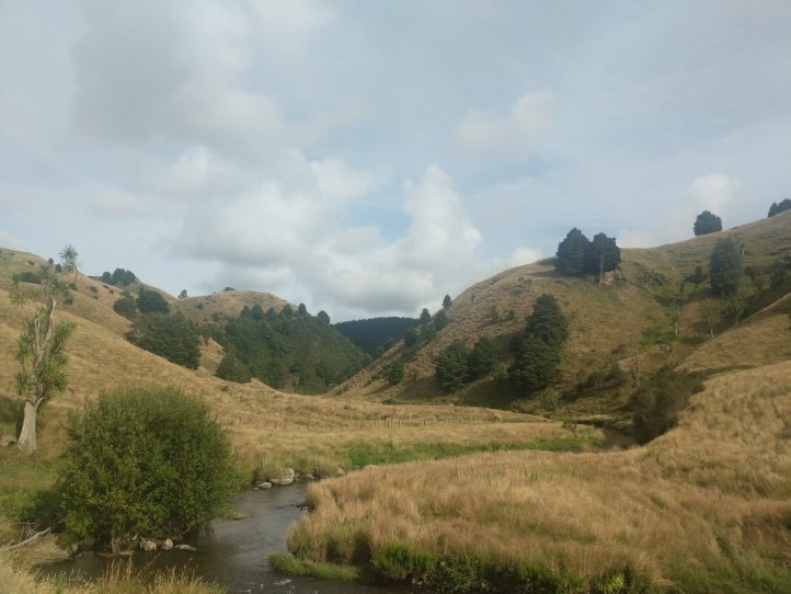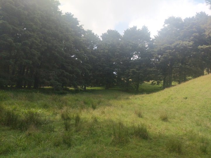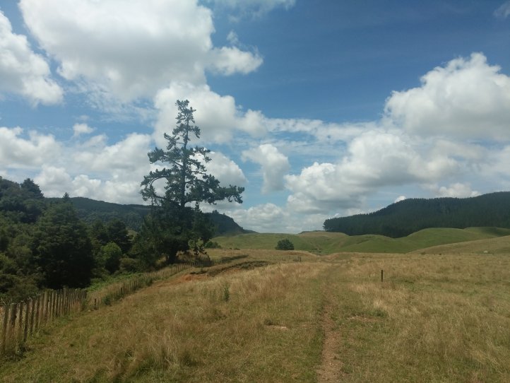 After getting sufficiently boggy and smelling like sheep poo we came out of the forest and hit farm track. By now it was about 12:30 and the sun was out in full force with no shade. We walked along the farm a ways to a campsite that had been set up by the farmer. This had shade and water and we did a quick wash, rinsed some of our clothes, and had lunch.