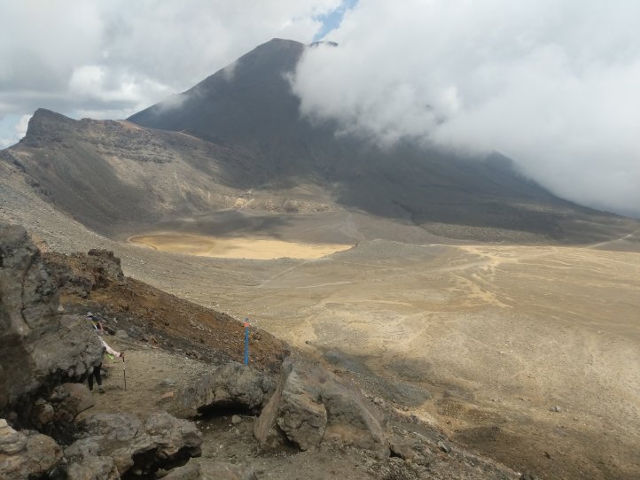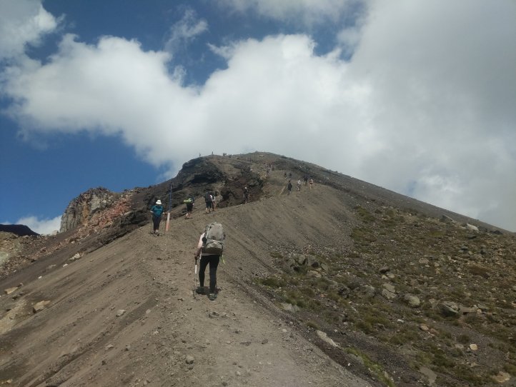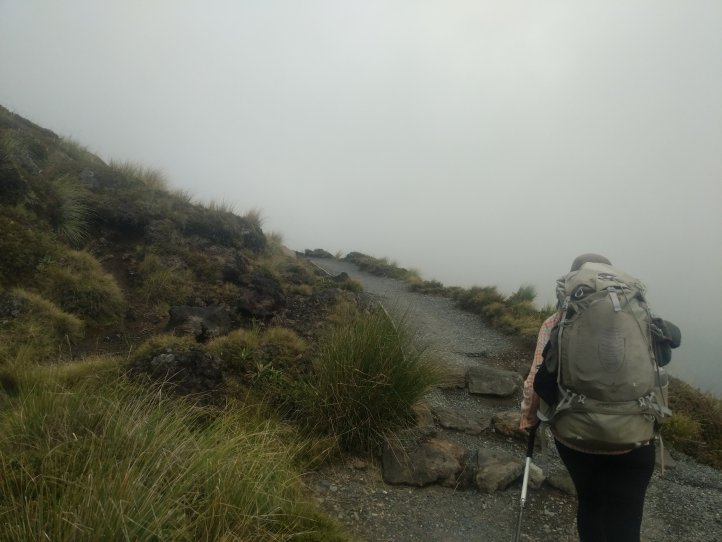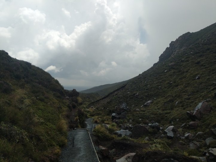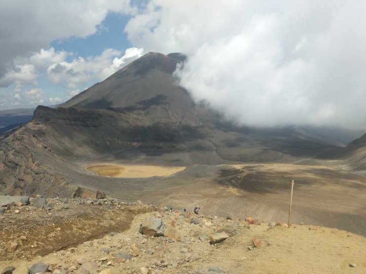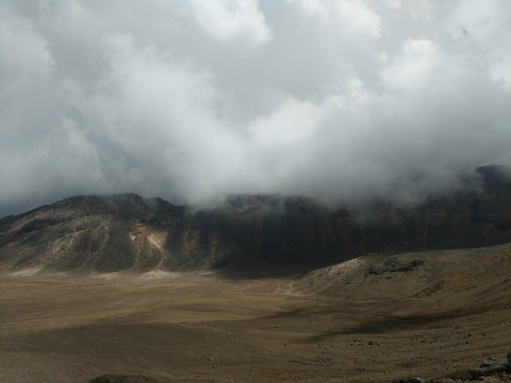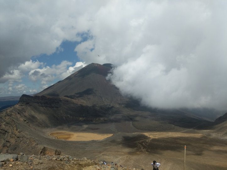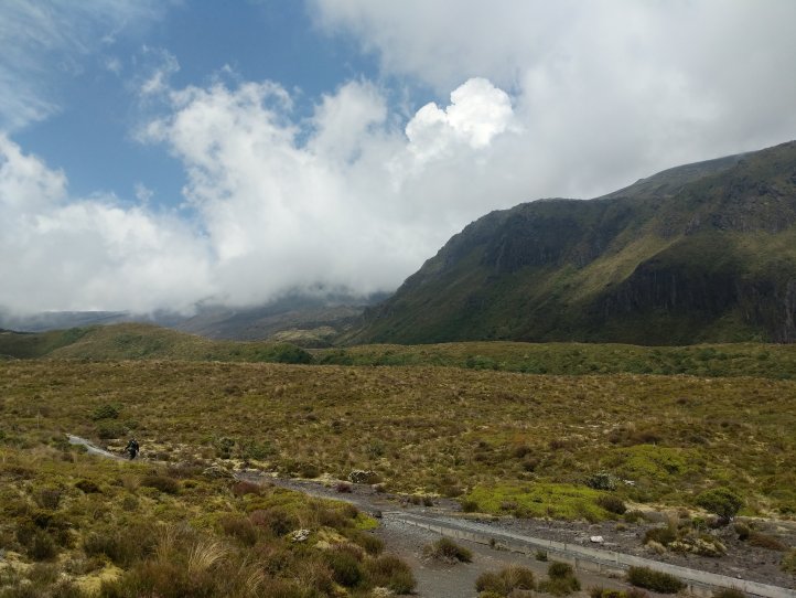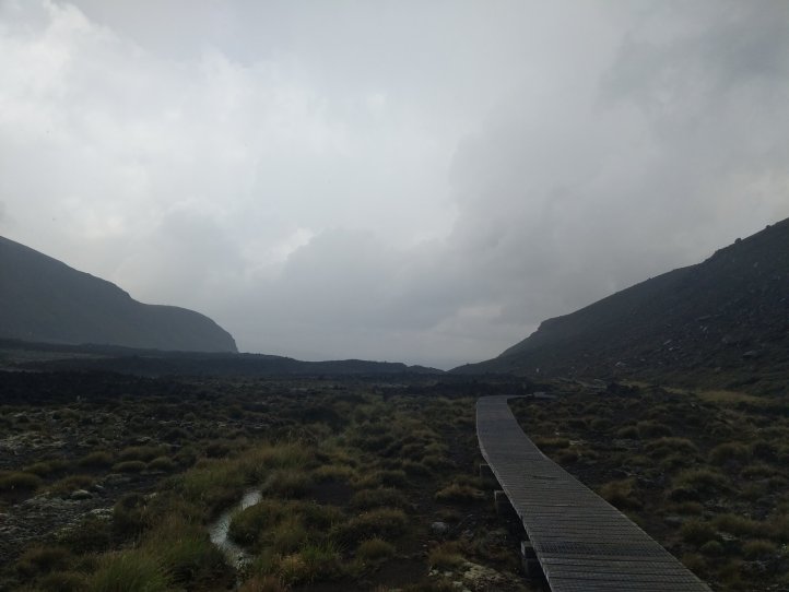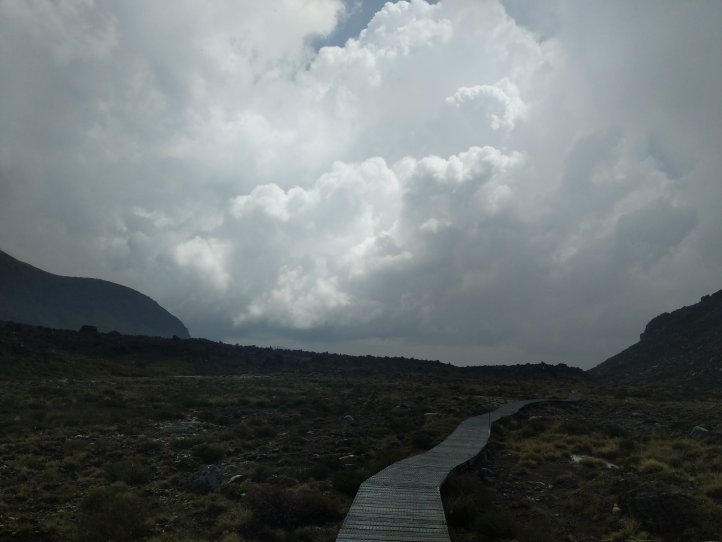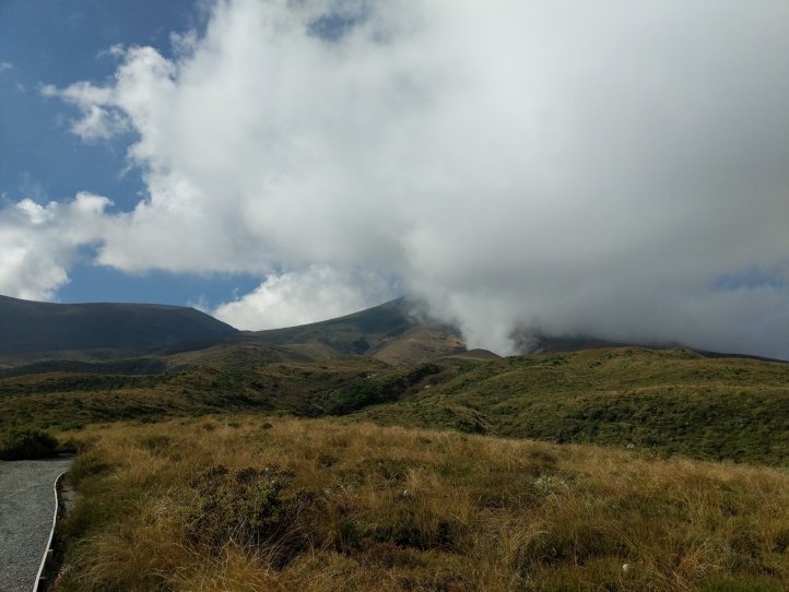 Today was one we’ve been looking forward to for awhile. The Tongariro Alpine Crossing is pretty famous world over as one of the top day hikes around. I’d completed it on my first visit to New Zealand 8 years ago but would be doing it, North to South, this time around. North to South is the opposite to how 99% of people do it so we were going against the tide for most of the way. We started with a 7.5km road walk from the holiday park. This wasn’t great (obviously, being road..) as we had a lot of tour buses passing us shuttling the day hikers around. We did have some good views of the mountains popping out of the clouds however.
