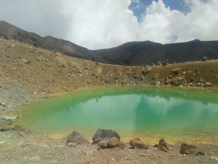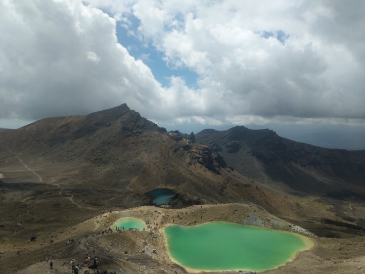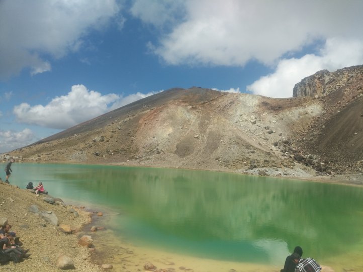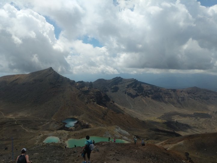 We were pretty worried coming up over the pass that it would be cloudy the whole day but right over the top, it completely cleared up and we had a warm and sunny view. We scrambled up alongside the Emerald Lakes before lunch up a very steep and gravely slope that most people were falling down.