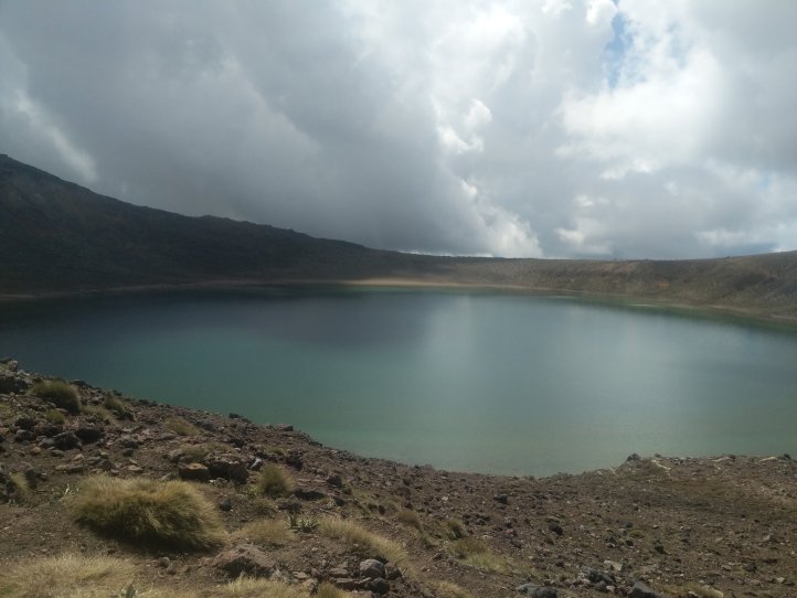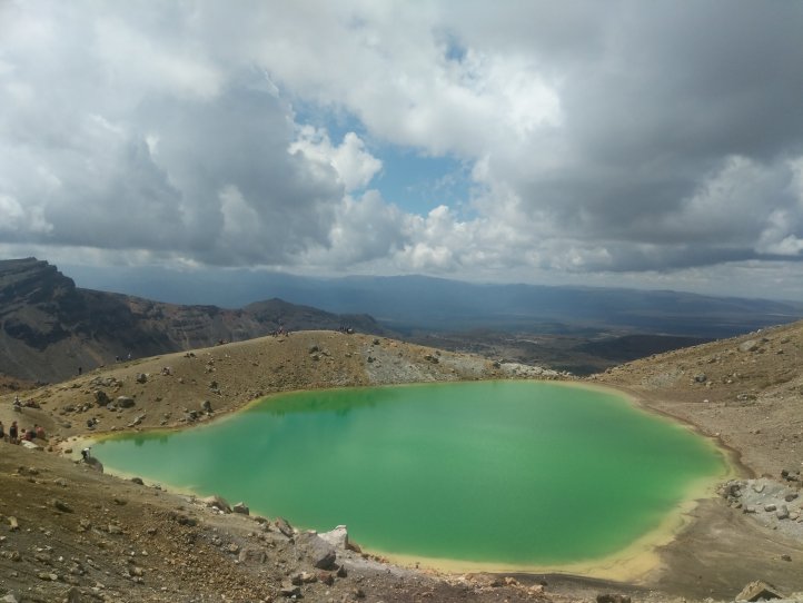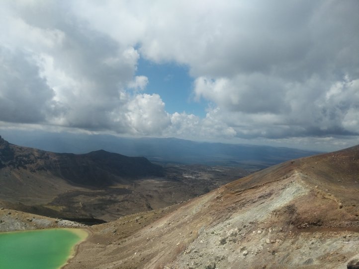 We continued to climb after the hut and up through the pass to take us to the first lake. Once we got here this was the majority of our climbing and we quickly passed Blue Lake and on to the Emerald Lakes and the desert like terrain of the volcanoes.
