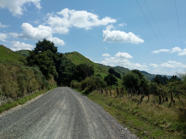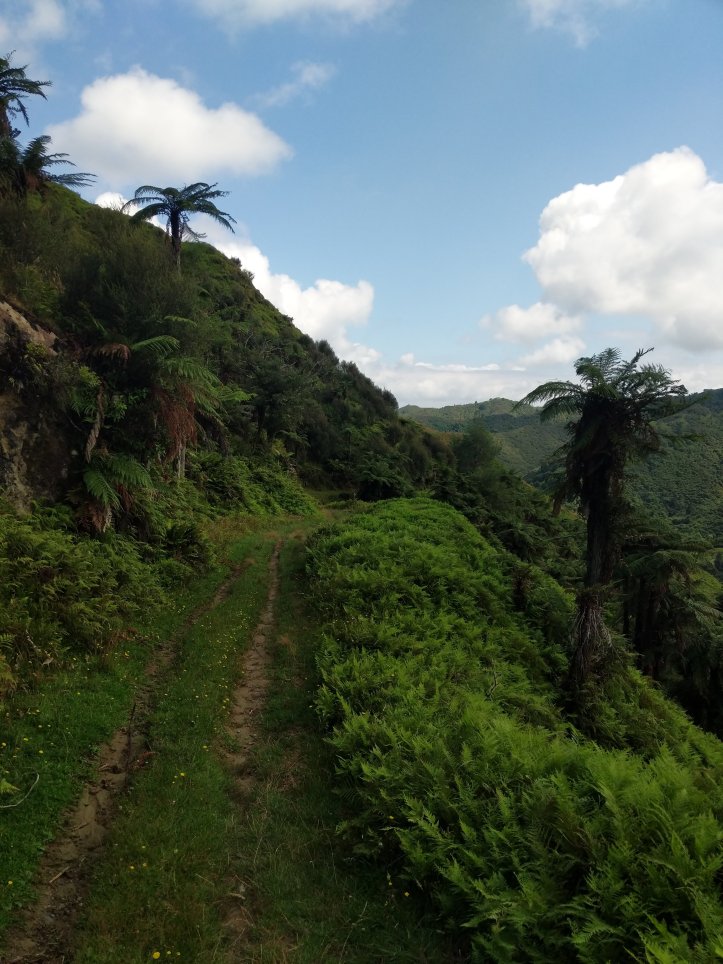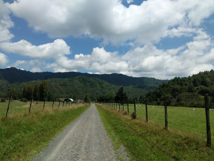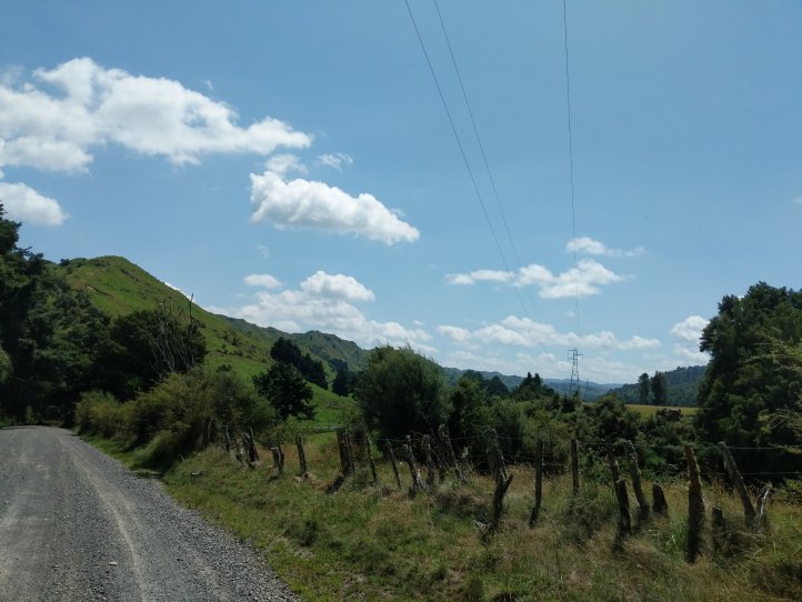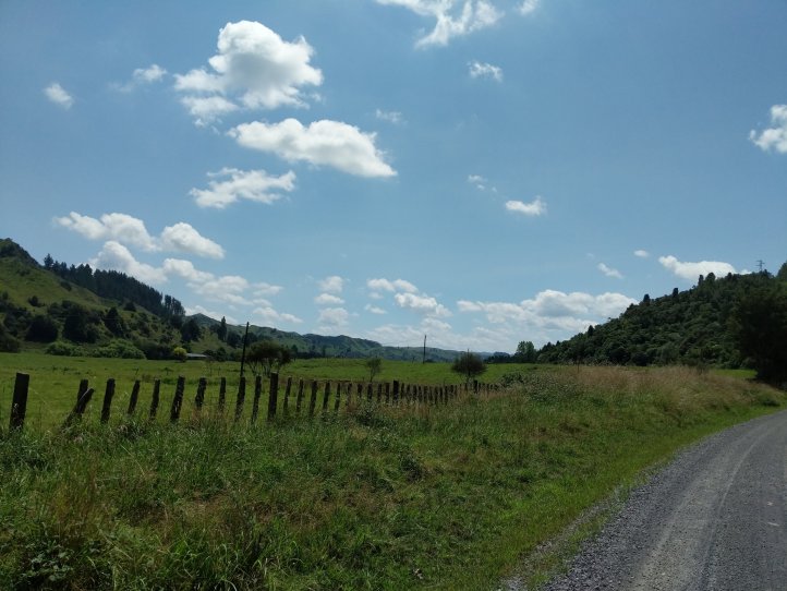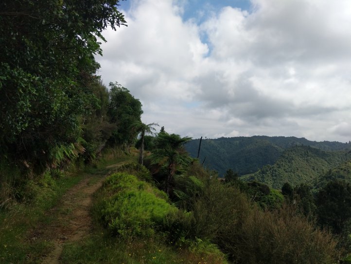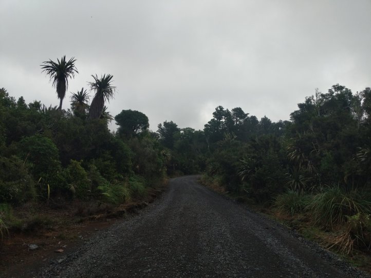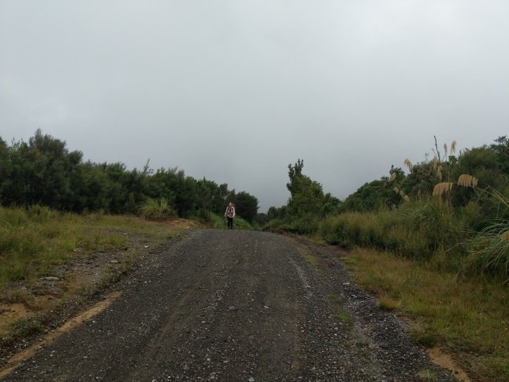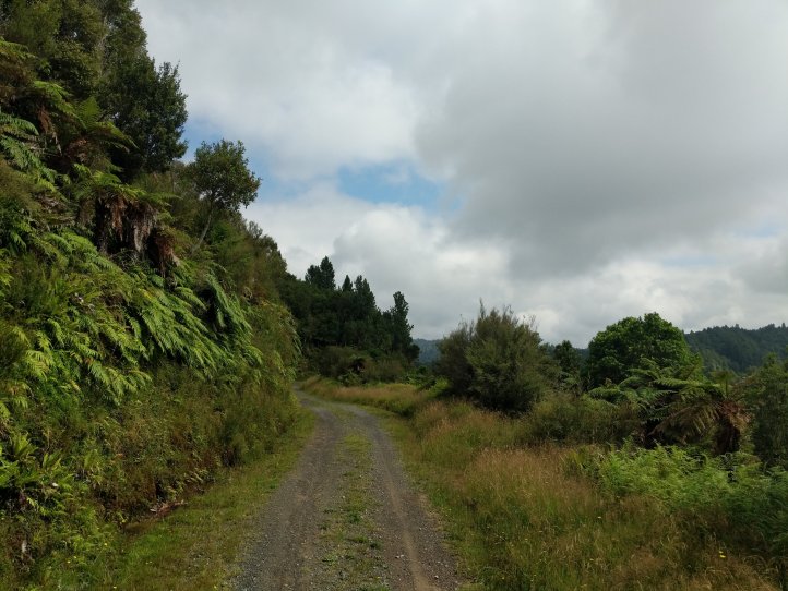 We made a nice big breakfast of beans, hash browns, and scrambled eggs at the YHA and then set off around 9am, a little later than usual. In our previous night of reading around the hostel we’d found out that today’s trail, the Fisher trail, was actually a cycle route and would probably be quite easy for us so we were much less concerned about time. We exited National Park over the railway and began along a gravel road for several kms.