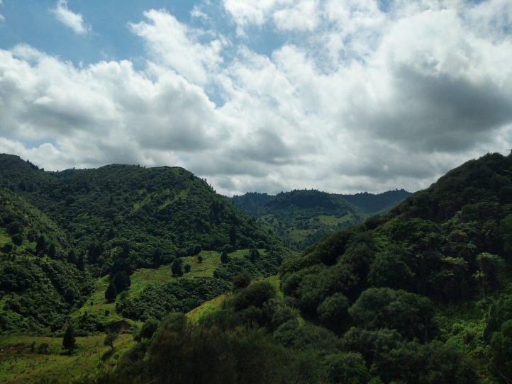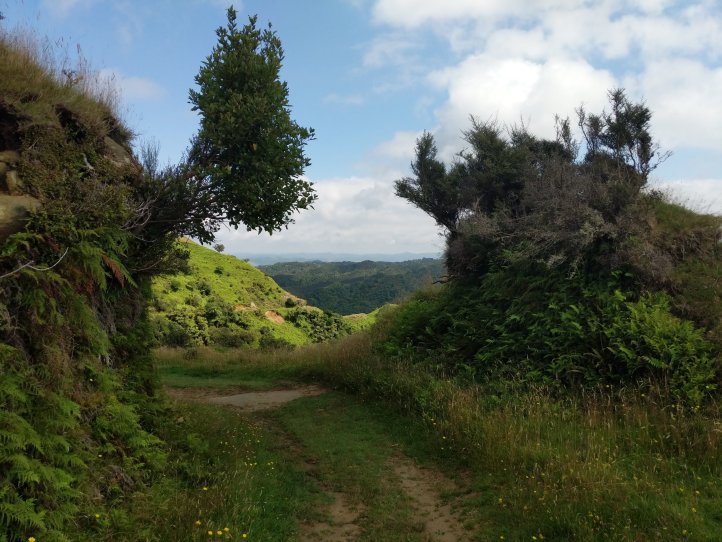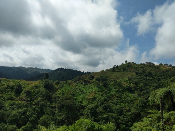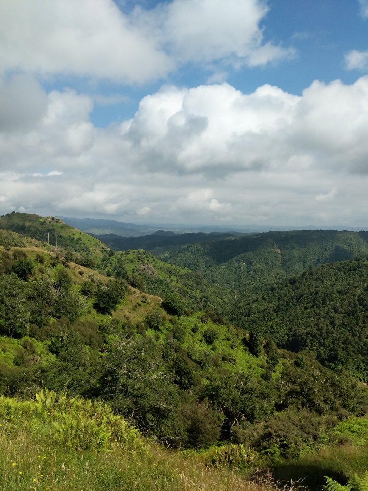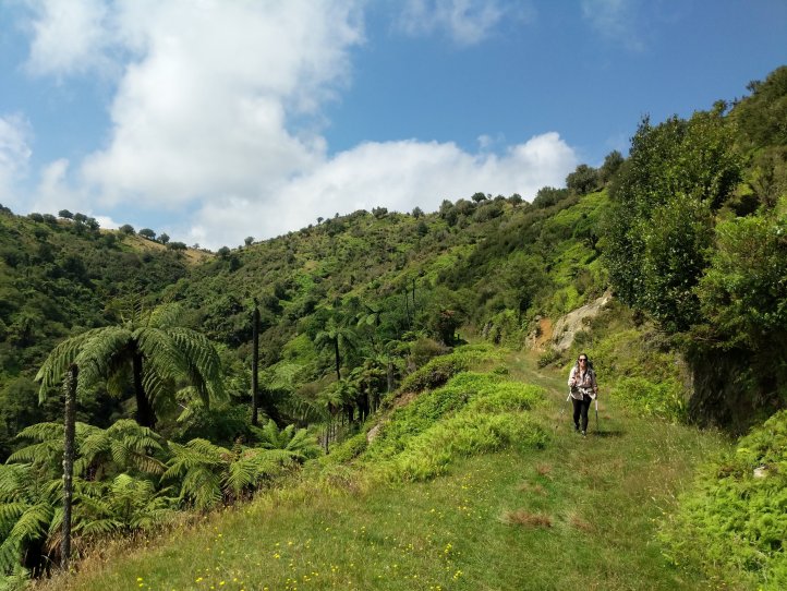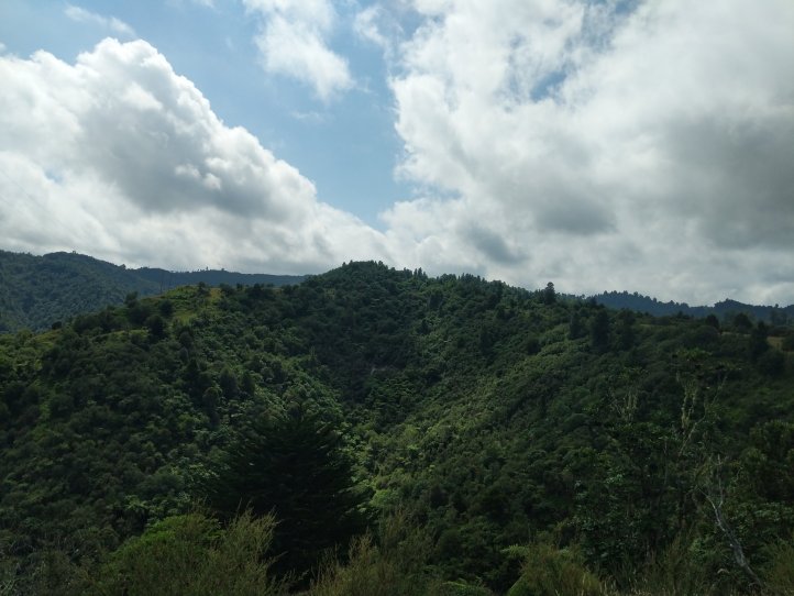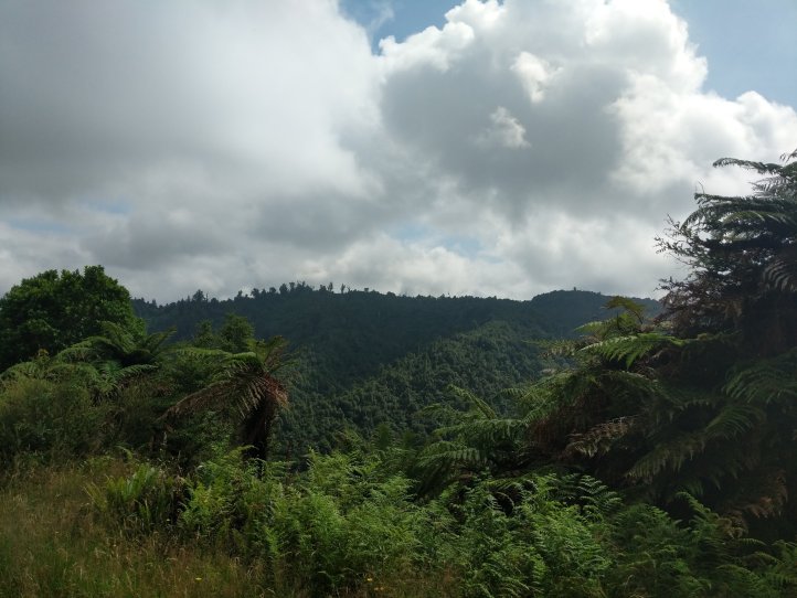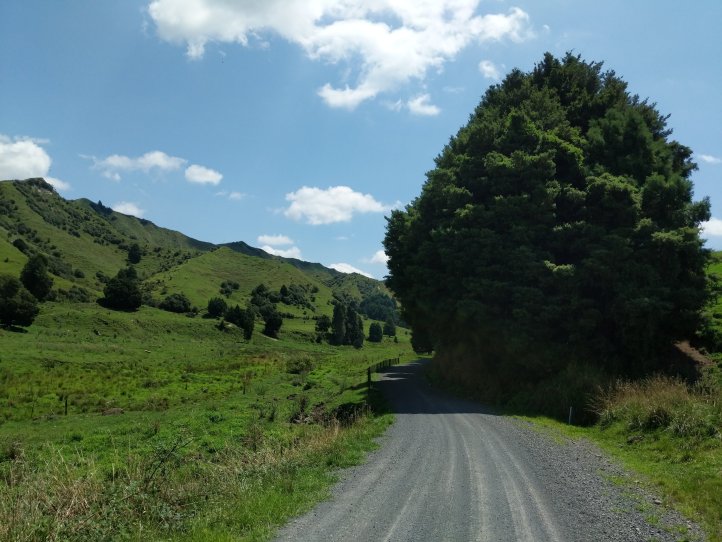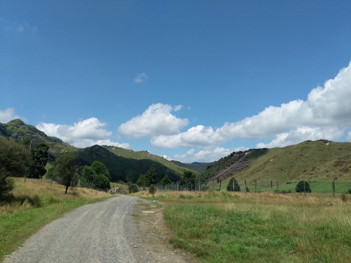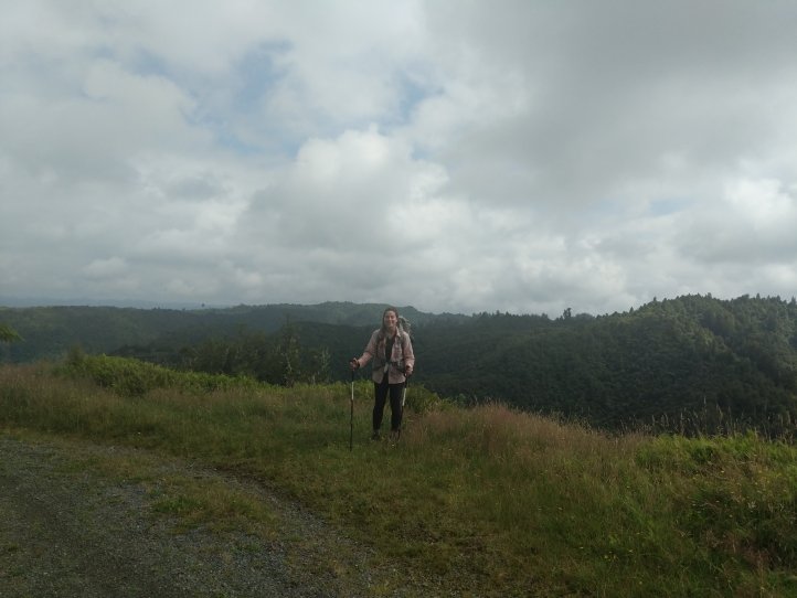 We made a nice big breakfast of beans, hash browns, and scrambled eggs at the YHA and then set off around 9am, a little later than usual. In our previous night of reading around the hostel we’d found out that today’s trail, the Fisher trail, was actually a cycle route and would probably be quite easy for us so we were much less concerned about time. We exited National Park over the railway and began along a gravel road for several kms.