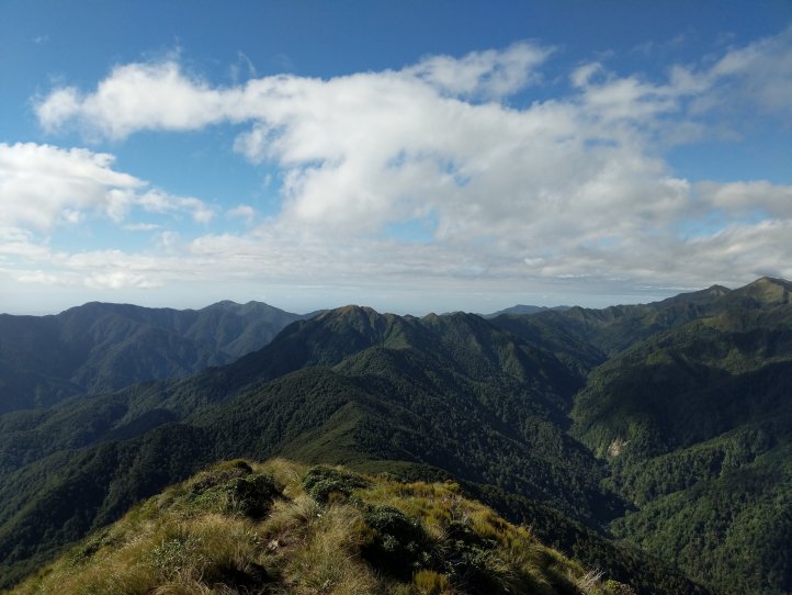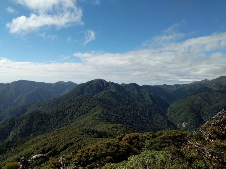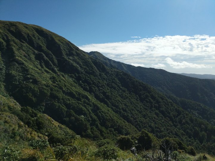 The rest of the track was a mostly nice bush walking following the ridgeline with a few occasional spurts above the bush into tussocks. We had really nice weather for all of this and even a good deal of sun. From some of the notes left in the hut books and the things we’ve heard about the Tararuas we’re very grateful to even have a small glimpse out.