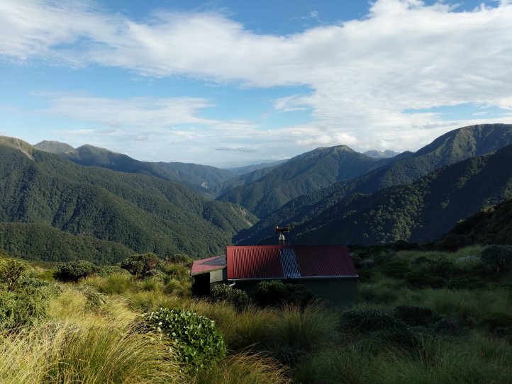 We ended up breaking for lunch right before descending into bush as we found a good spot and the sun was out at the time. We continued on a ways through the bush before coming to the small two person hut for a quick break. It was a neat little hut but definitely for no more than two people.