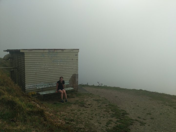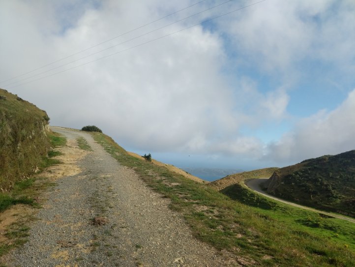 We reached what we thought was the summit but it turned out to just be a shorter lookout. We continued on up on a old farming road which by now was completely covered in fog/cloud and very windy. Eventually we reached the summit with a small hut and no view.