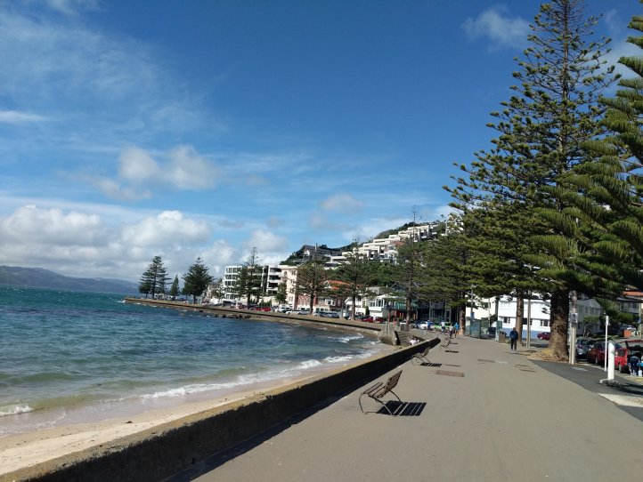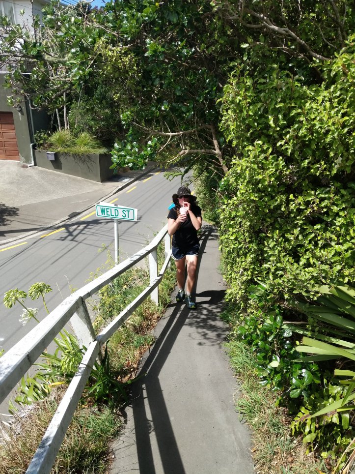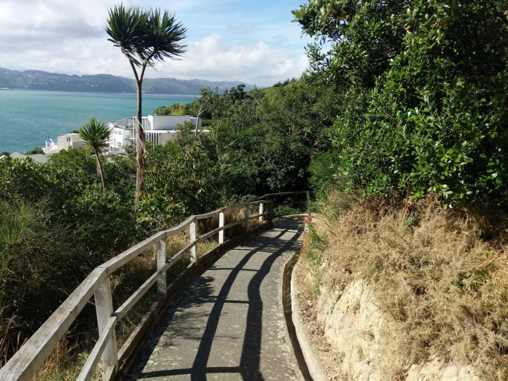We finally descended back through the other side of the gardens and across the highway into Wellington itself. It was a quick walk through the city to the waterfront and around Oriental Bay to the start of the Mt Victoria climb.
