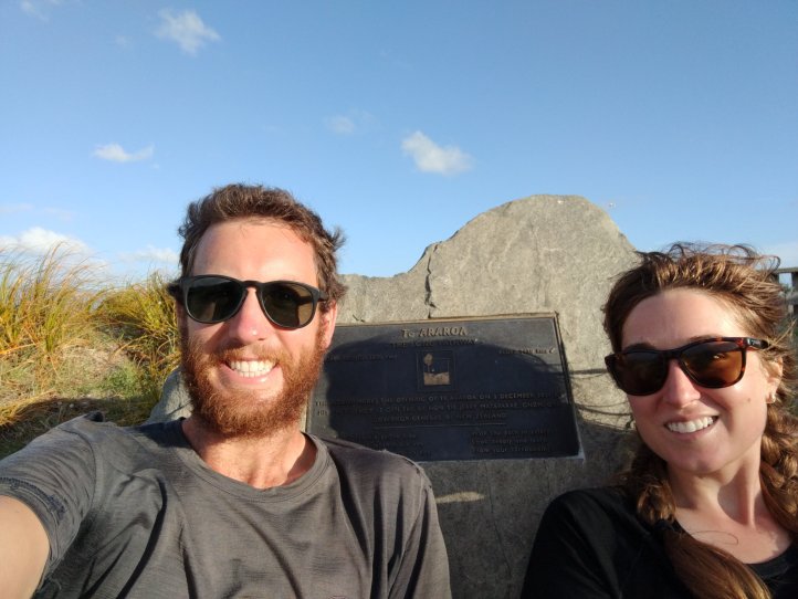We had a few more tops to climb up but by this point we were just slogging on trying to beat the clock and sun. Eventually we started to descend down towards the ocean and after a short walk along the waterfront we circled back into a park and found the marker for the end of the North Island. It was a little funny feeling so monumental at this stone with everyone else just going on normally around you but didn’t take away from the great feeling of finishing. We got some well earned fish and chips for dinner after. Now for a few days rest and then the daunting challenge of the South Island.