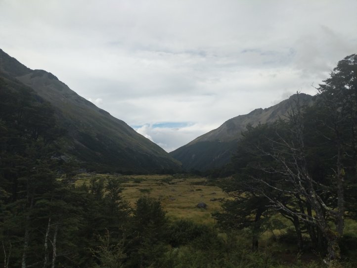 We started off early coming out of the hostel and getting to the lake as we knew we had a big day ahead of us. We were hoping to make it about 35km to Upper Travers Hut at the base of the first pass. The first 5km was extremely easy along side the lake with several nature loop walks for those not looking to venture to far into the wild. The lake was very beautiful with a great backdrop of mountains but we couldn’t stop for long given the swarms of sand flies that would attack us whenever we paused.