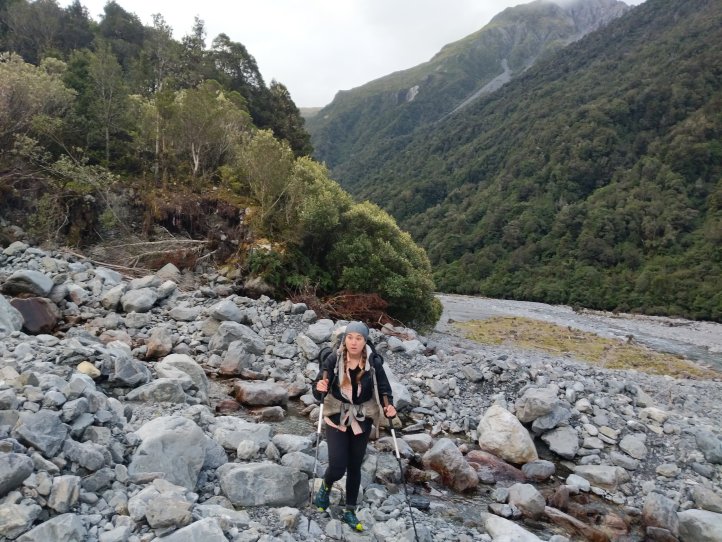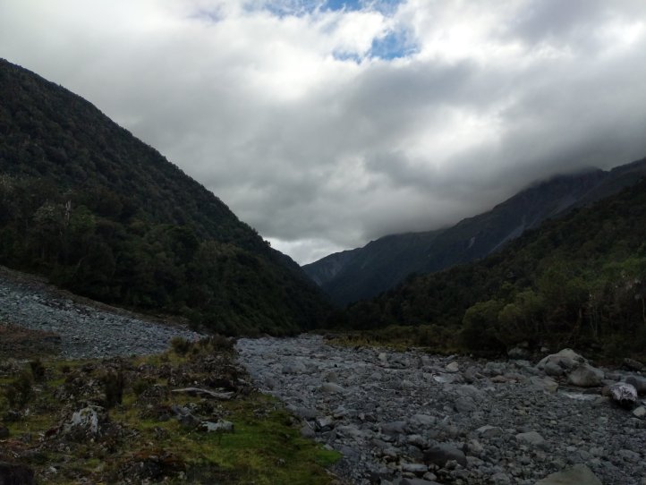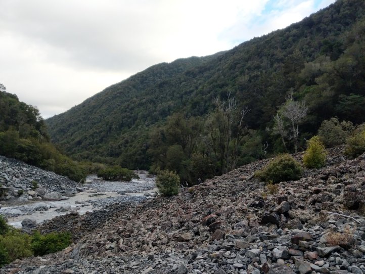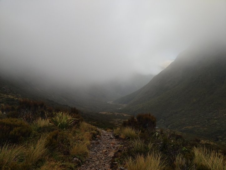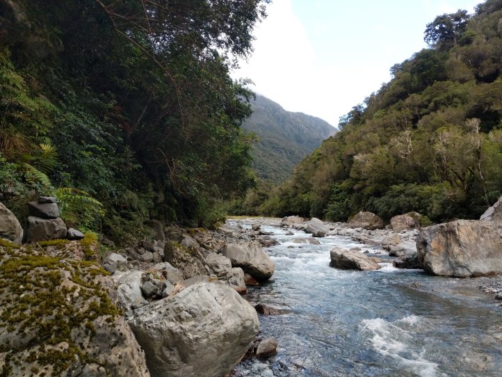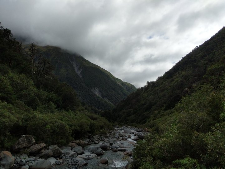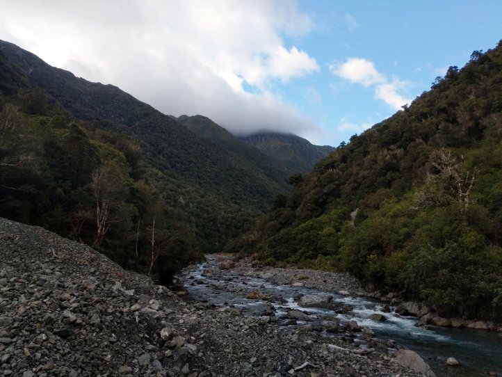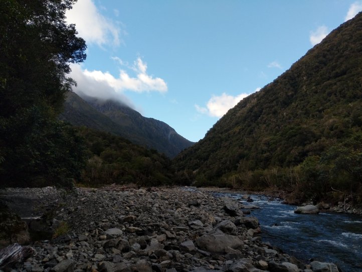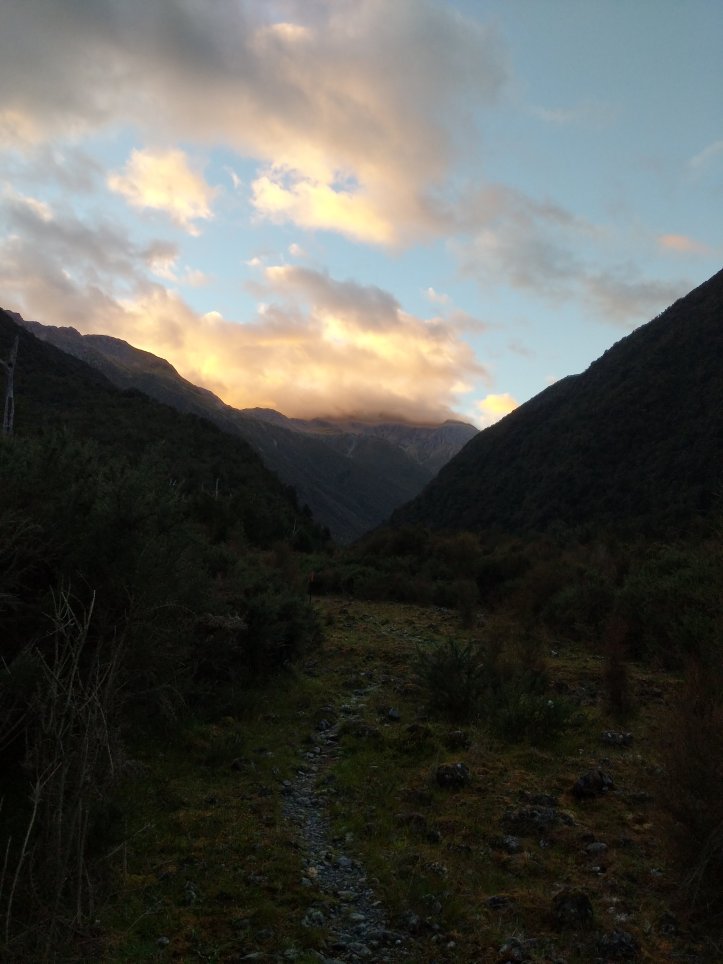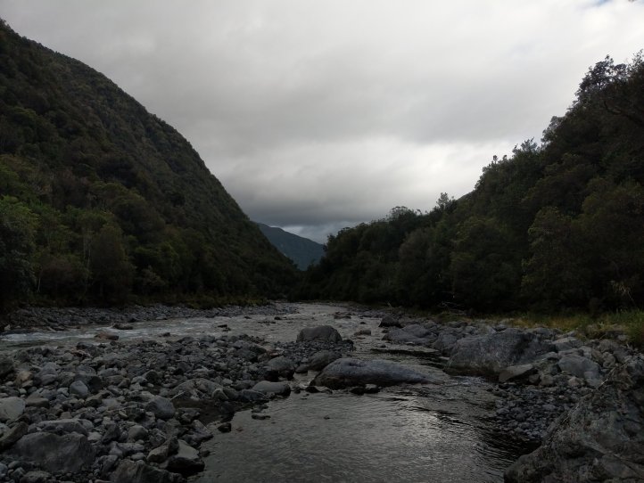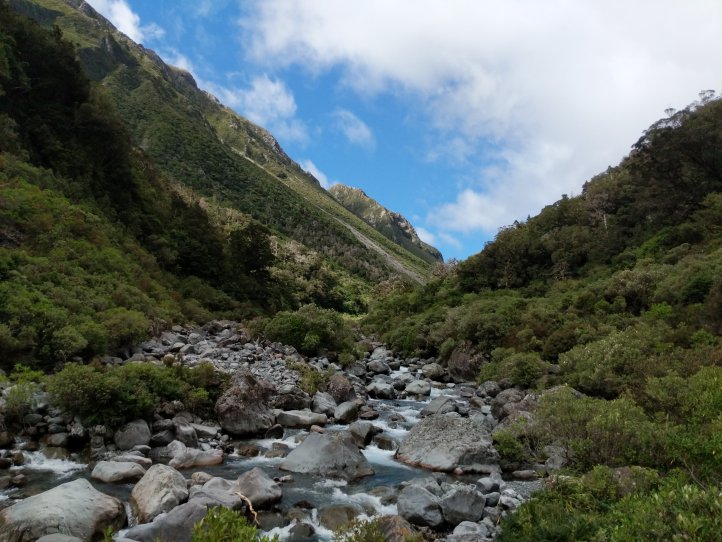 We hit the hut at the top and after a brief pause we decided to continue on. Going on put us in Arthur’s Pass a day early so we’d be able to take a zero and the hut had no fire place and we were cold. Arthur’s Pass was only another 10km downhill so we got going on what was a much nicer trail. It started out with boardwalk over the top of the pass and then descended by the Mingha river and with plenty more rock fields to cross.