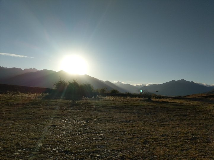 We descended down the saddle with views over the lake and town. The descent was quick but when we got to the bottom with about 10km left to go the day really started to get hard. We were constantly walking into very strong winds with no break whatsoever. To make it worse we were also walking into the sun as it was starting to go down so couldn’t keep our hats on and could hardly see.