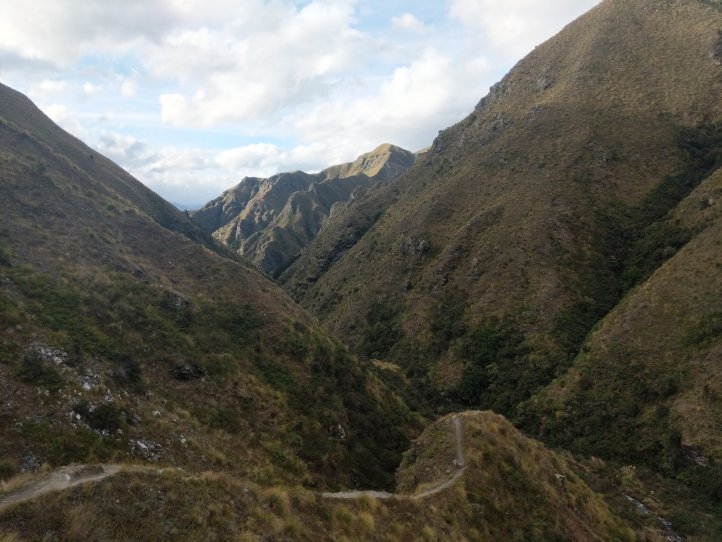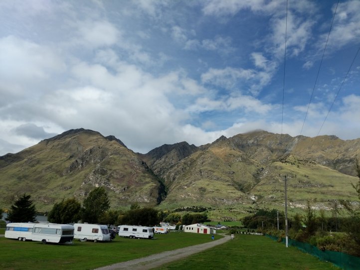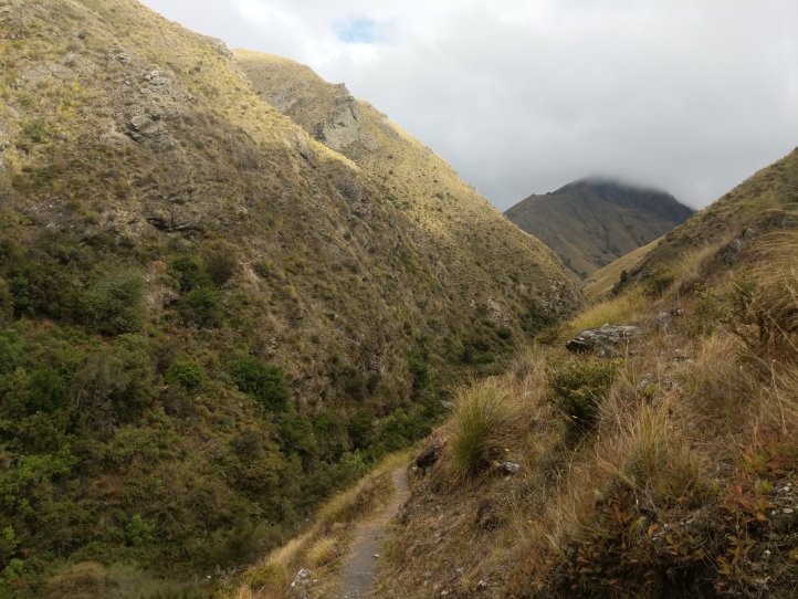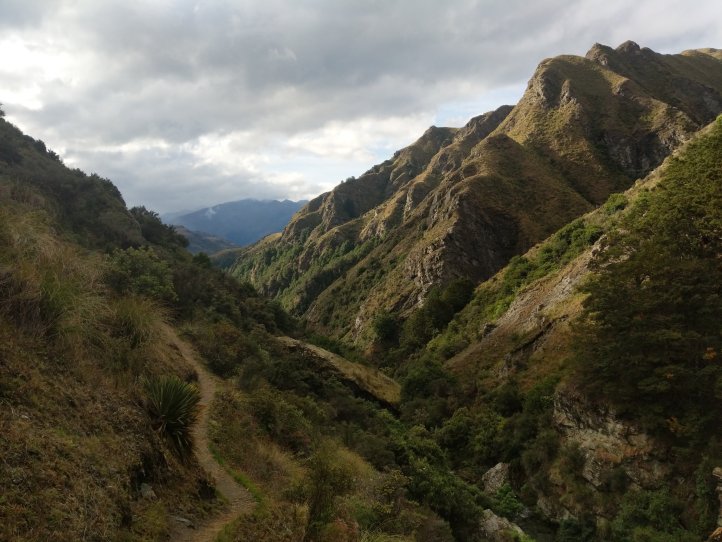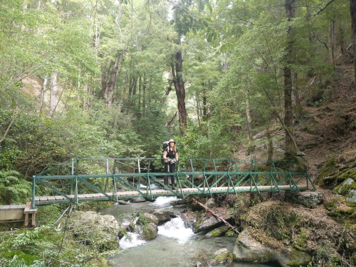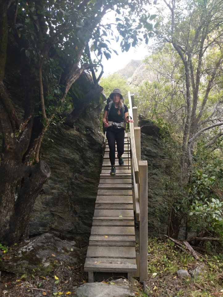 Annoyingly the rain kept starting and stopping and we found ourselves constantly putting on our rain gear in the wet and then taking it off five minutes later as the sun would be out and we’d be sweating again. Making good use of the benches while we have them we stopped for lunch and enjoyed getting back to our traditional tuna wrap with cheese (the cheese is now an essential staple in the wraps). The track took us through a holiday park and then onto road for a few kms before hitting the start of the Motatapu track.