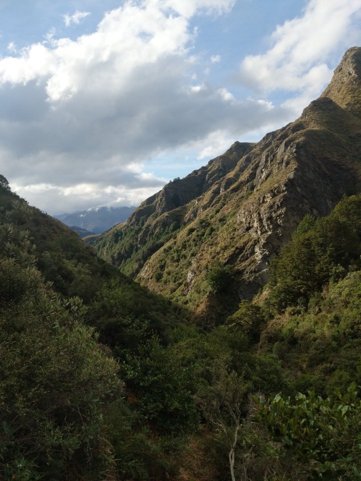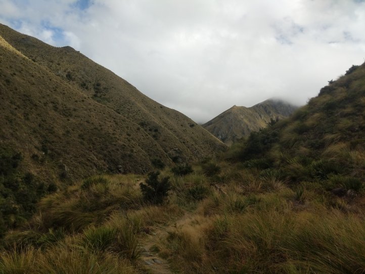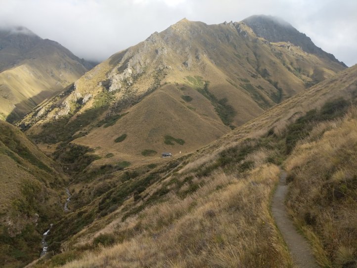 We popped out of the forest onto tussock country and completed another few kms at the top of the valley before reaching the hut. It was a steep gradient but a very nice track, obviously pretty well used. Approaching the hut we were level with it for about 400m but then the last 100m makes you climb down and back up a gorge that can’t be seen until the last minute. Never an easy walk into the hut.