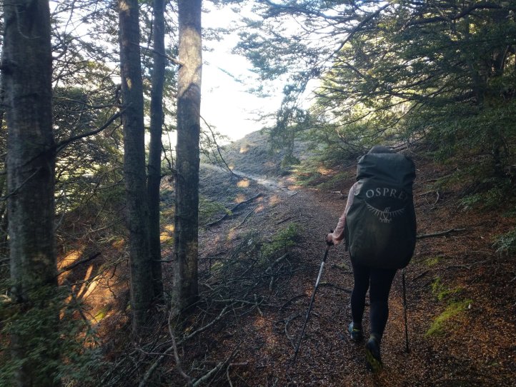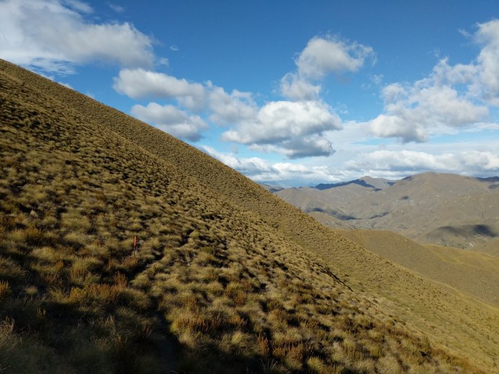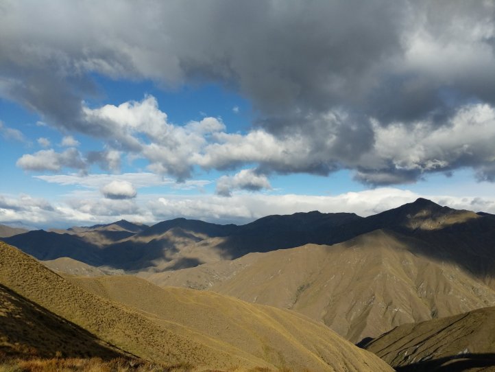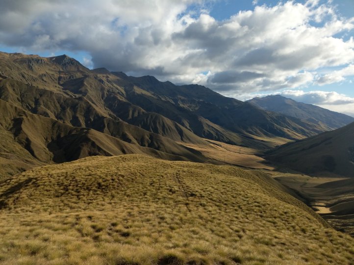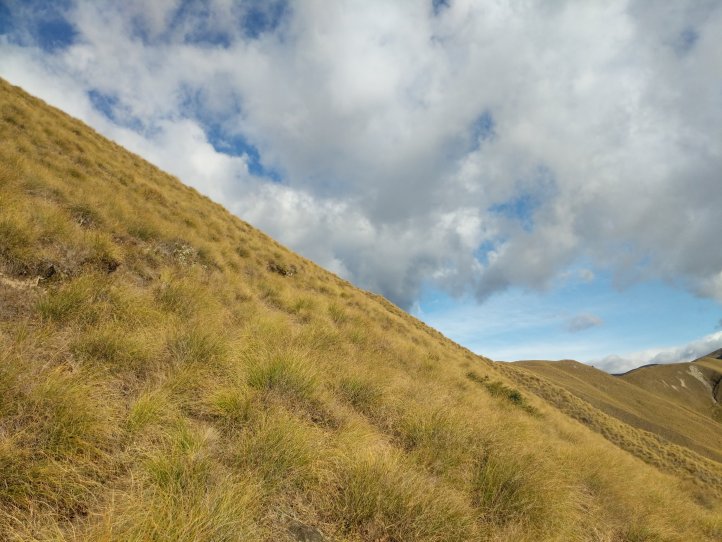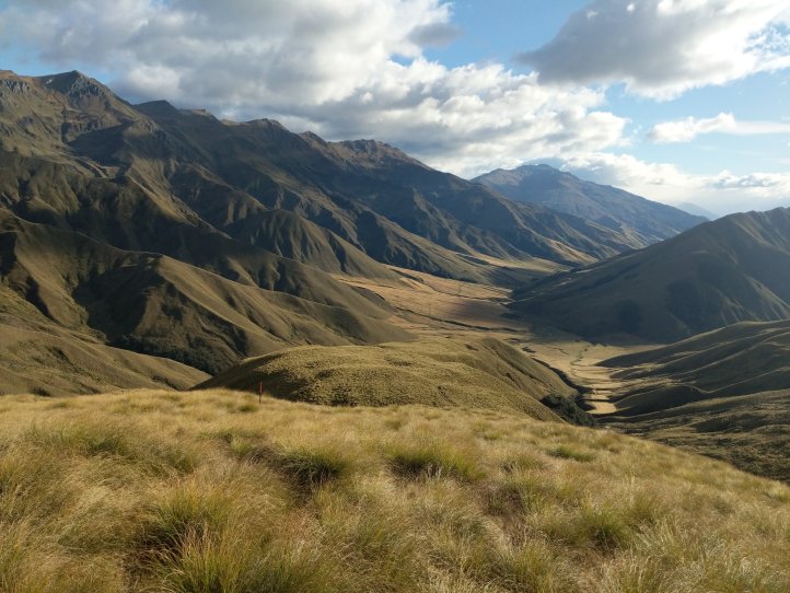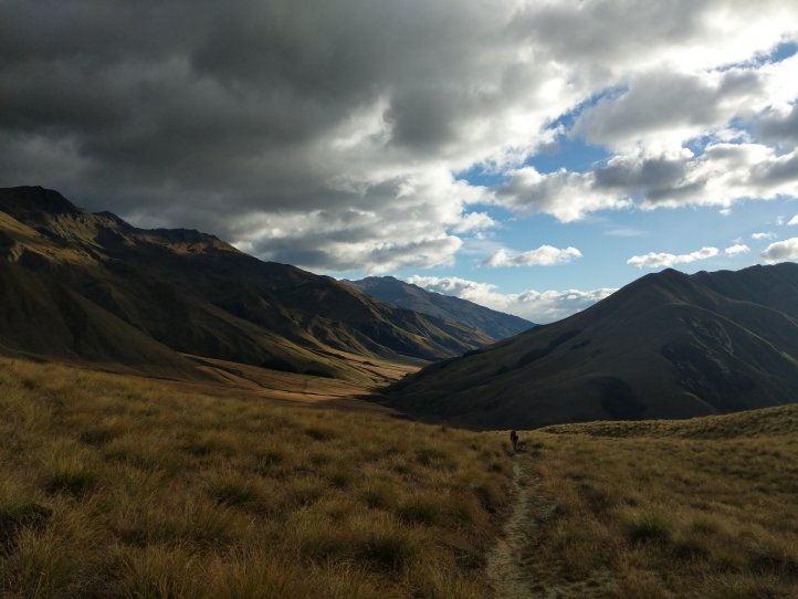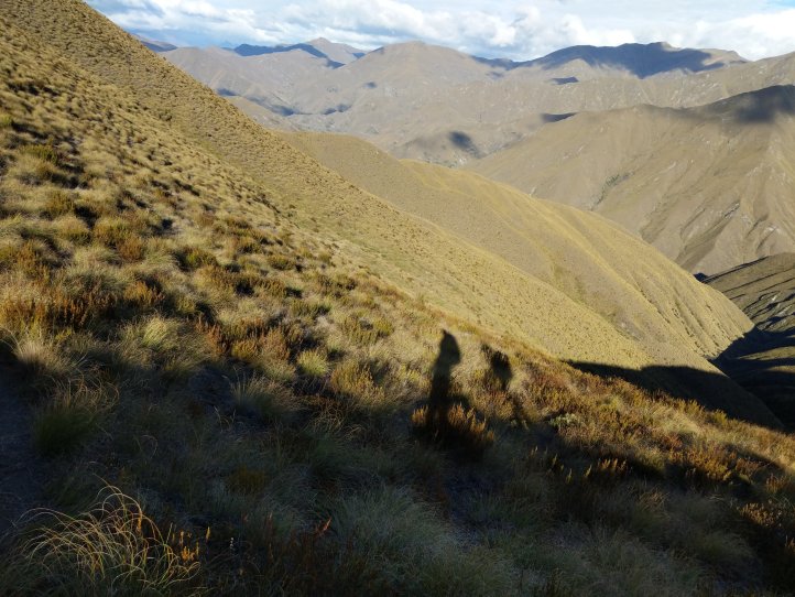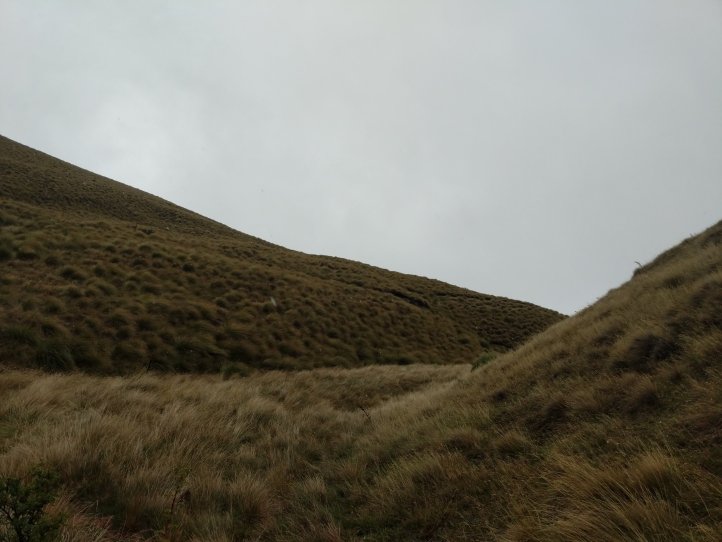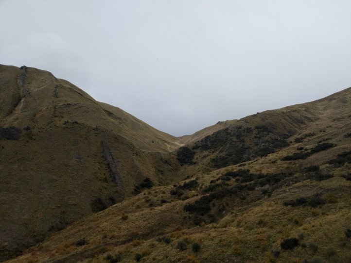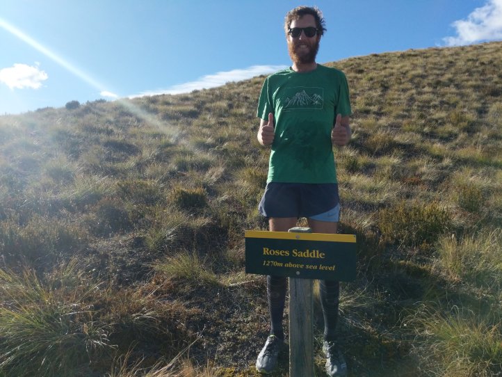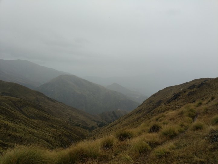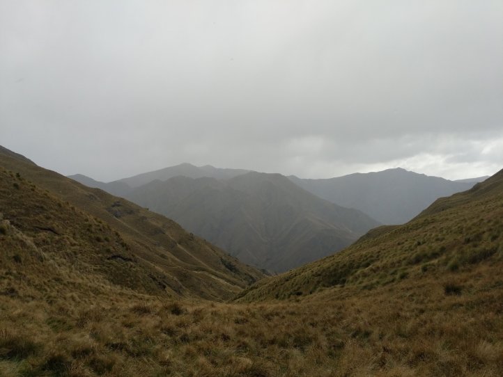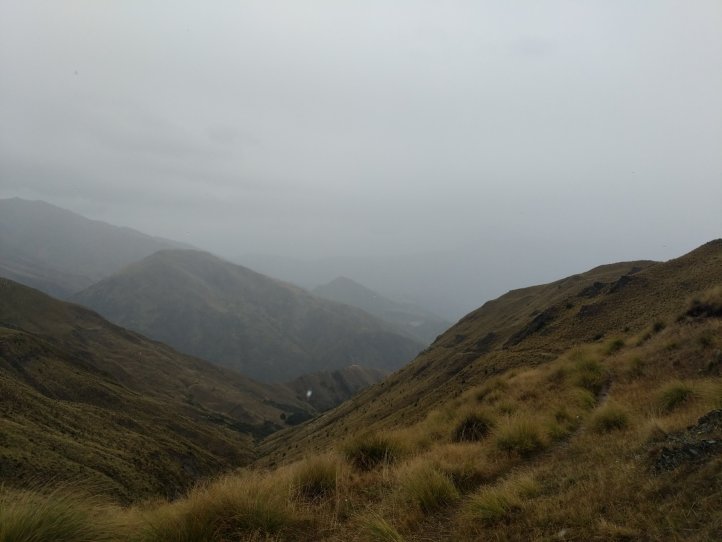 Two more big climbs today. Thankfully none of them were in snow, Roses Saddle was under a good foot of snow when we were coming over Stag Saddle so it was nice to see this clear. We were again first to leave the hut with the slowbo’s debating about the various weather possibilities as we headed out. There was a light drizzle coming down but for the most part we were okay. We got more sweaty from the climb than rain. We started out from the hut with an immediate 400m climb to Roses. It was again a pretty straightforward climb with options to sprint straight up or take the switch back route. I took the straight up route and Heather, not realizing there were switchbacks, followed me straight up as well.
