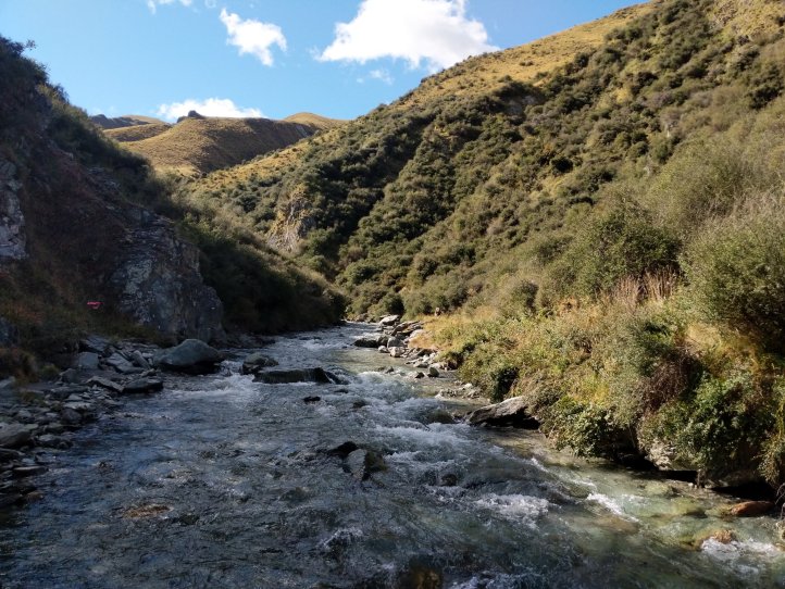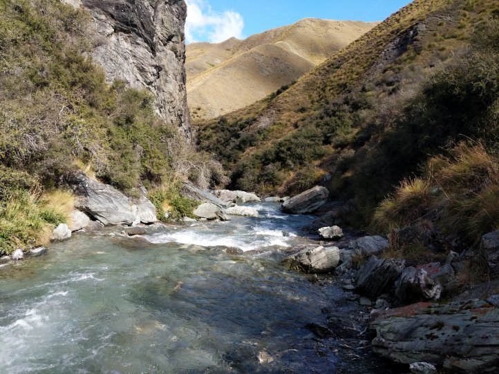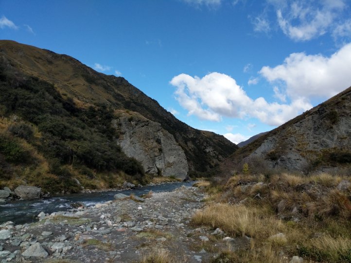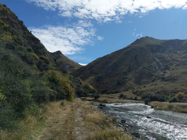 The river was freezing cold but never came above my socks (I’m wearing over the calf compression socks now so that has to be taken with a grain of salt). It was generally a nice walk and as we neared Macetown the 4WD track started to form on the side and we were able to move much more quickly.