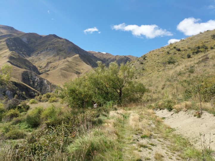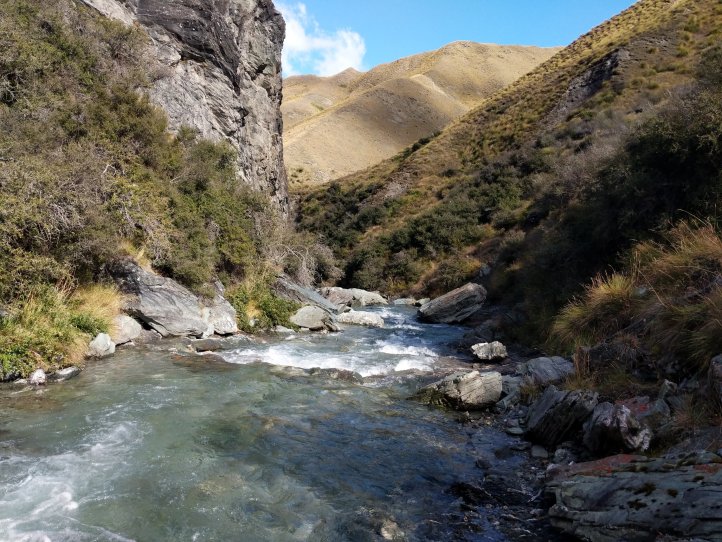 Macetown is an abandoned gold mining town that used to be flourishing in the late 1800’s. It doesn’t have any population anymore but the DOC has converted it into a semi campsite (they’ve added a few portapotties). There were a few old historic buildings and a couple signs with information. We stopped for lunch here and saw a large group of day hikers on a tour pass by on their way back to Arrowtown.